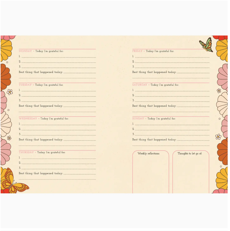 Are you ready to live a life of gratitude but don't know where or how to start? The simplest and most effective way to begin your journey of gratitude is by rewiring your brain to look for the good that already exists in your life. When you focus on the good, the good gets better. Update your mindset and greatly change your life for the better by starting a daily gratitude practice with this fun, easy-to-follow gratitude journal. We love journalling first thing in the morning, but you can do it whenever works best for you. At first you may forget days here and there, but we encourage you to keep going even if you miss a day – it's all about the bigger picture. As you continue your daily gratitude practice it will become second nature; not just in the pages of this journal but in your day-to-day life, and that's where the real magic happens! We are so excited for you to start living your most beautiful life with 12 months' worth of undated daily guided pages.