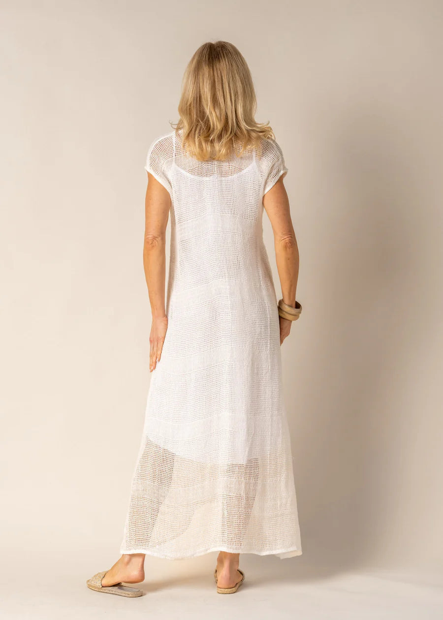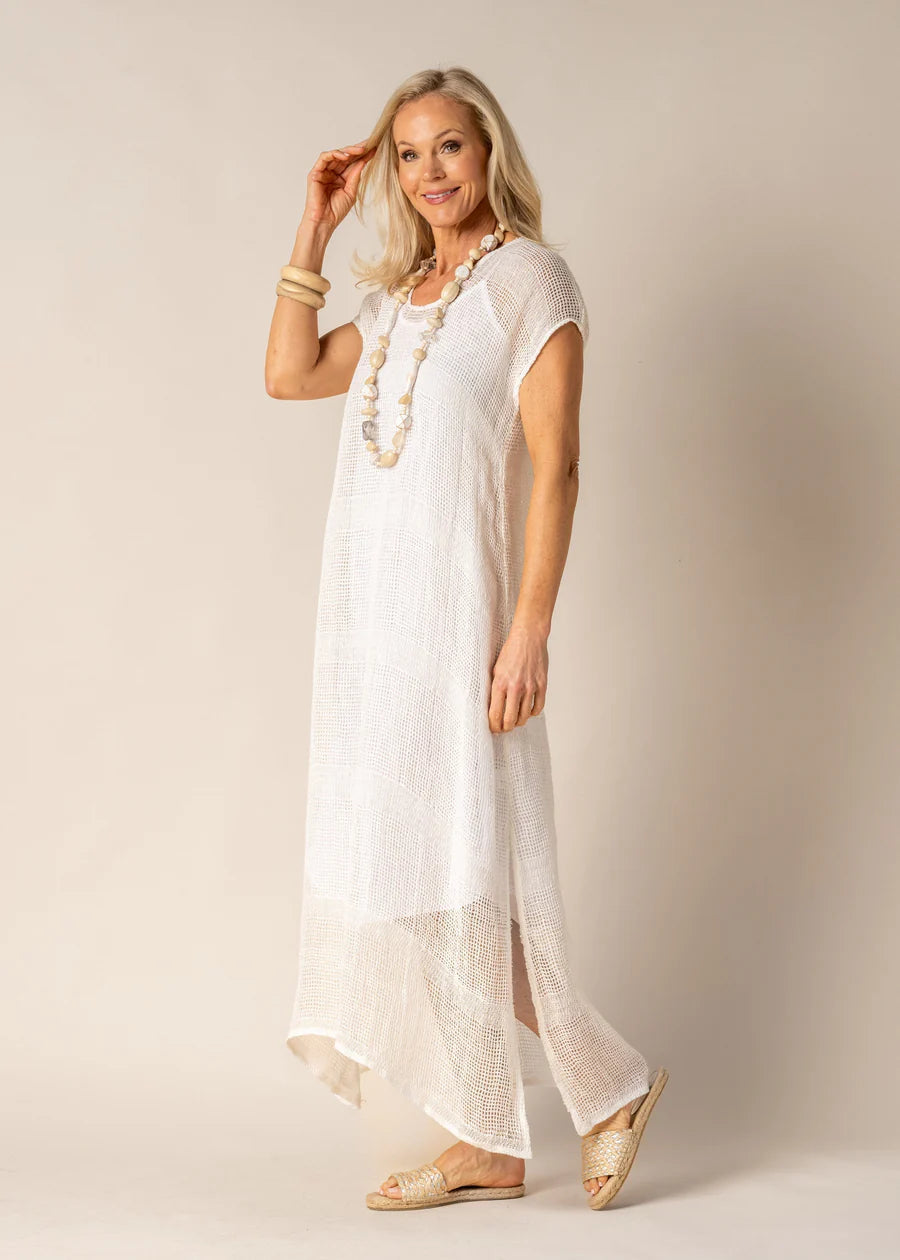 Embrace effortless sophistication with our beautiful 100% linen woven dress. Designed with elegant side slits and capped sleeves, this dress exudes simple elegance. For added comfort and a flawless finish, please note that a slip is not included but is recommended.