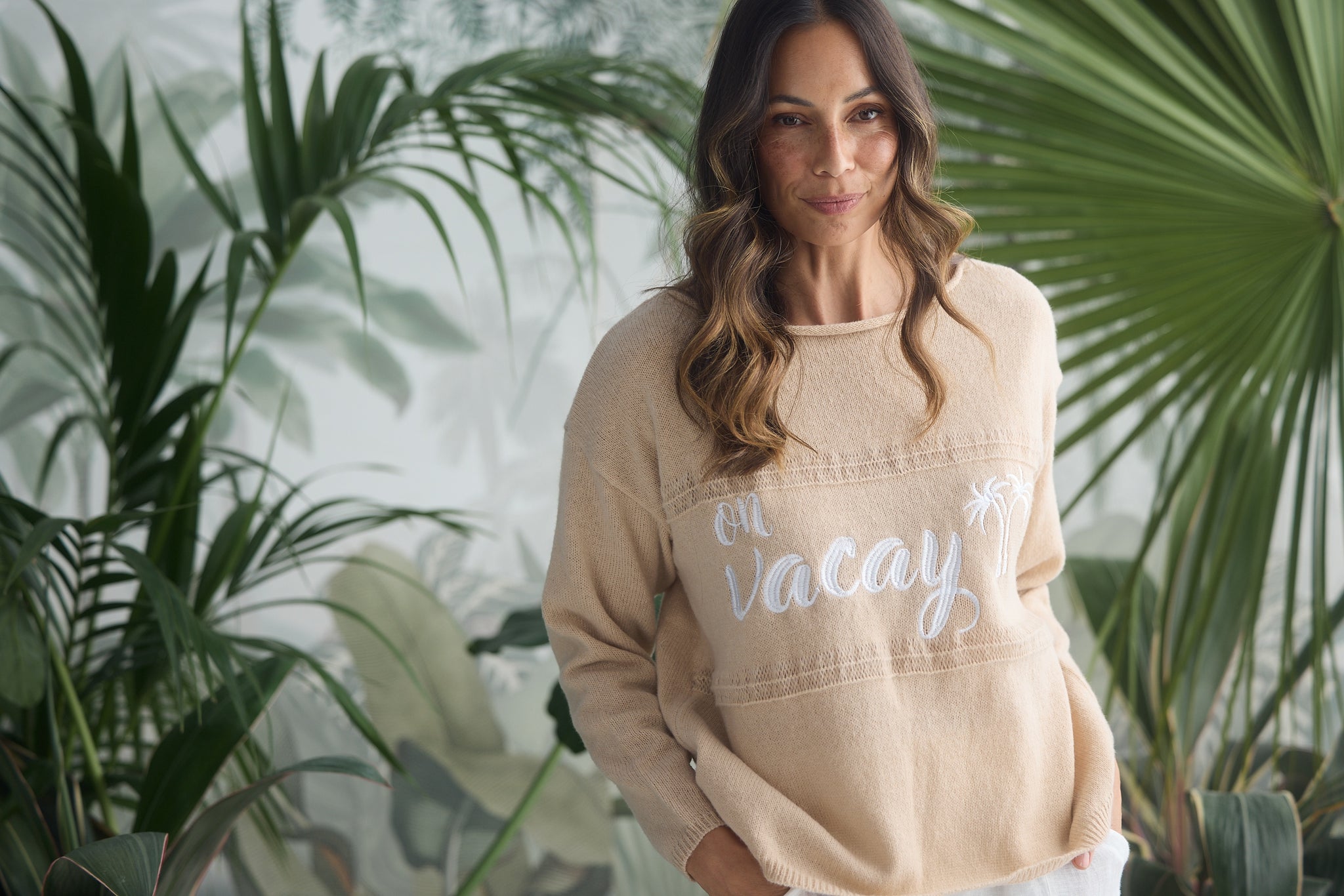 Boat necklineDrop shoulder seamEmbriodered artworkRelaxed fit