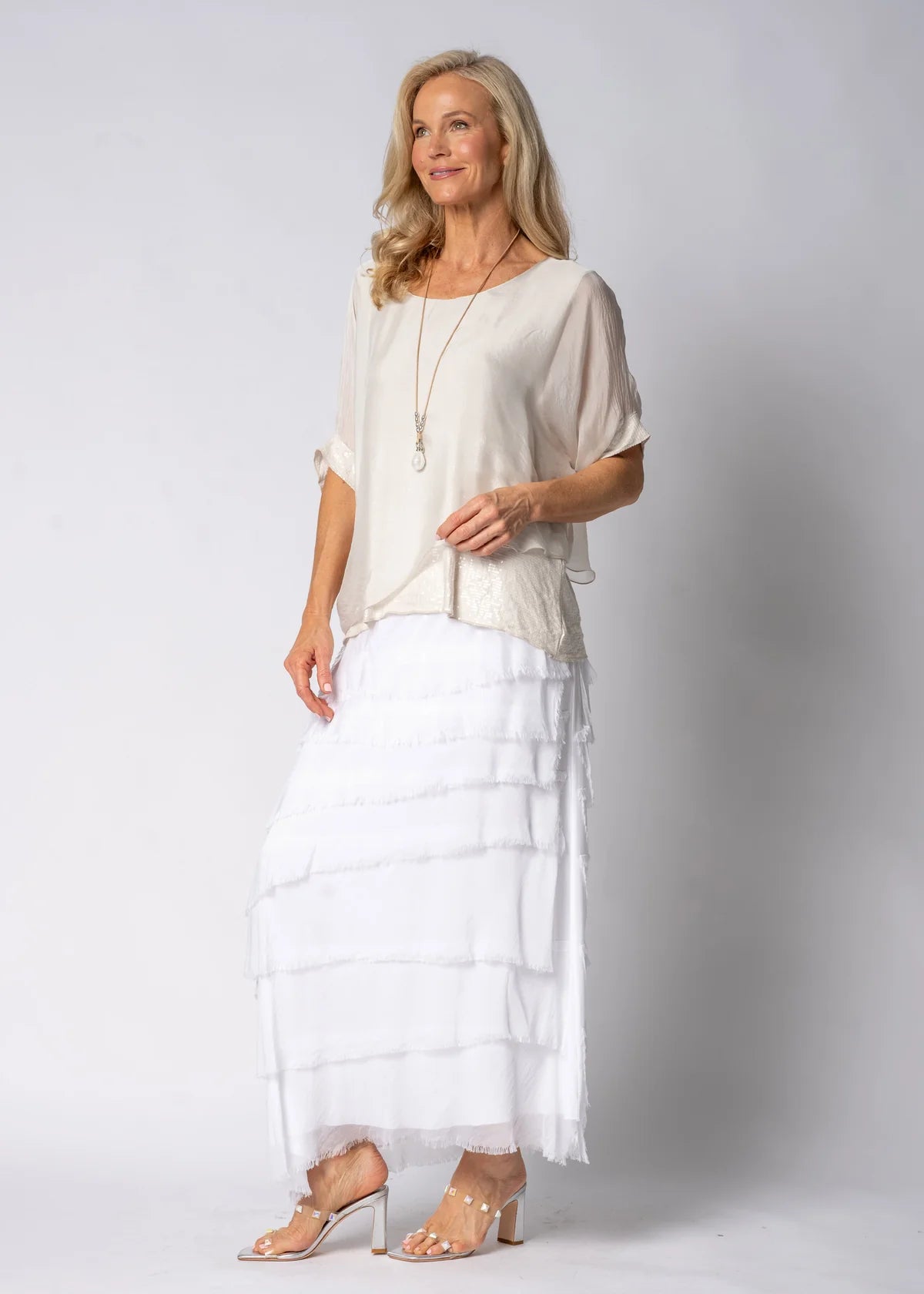 Designed to be as functional as it is beautiful, this silk top slips on with ease and offers comfortable layering possibilities. The naturally derived viscose underlayer ensures you remain cool and covered.